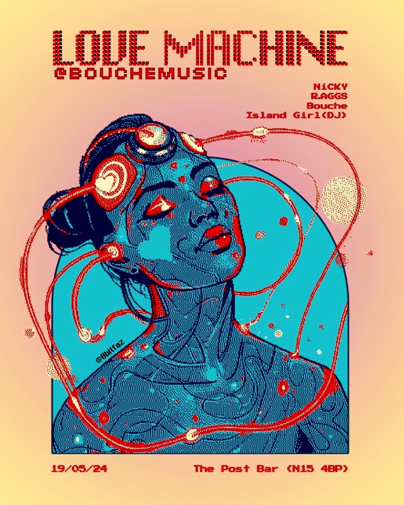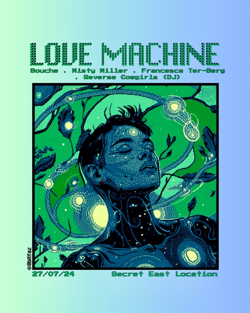 love machine is what we're doing rn. a seasonal gathering, guest musicians, djs and a new bouche show every time. <3 posters by @8bitfaz